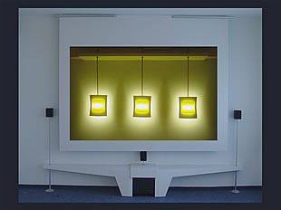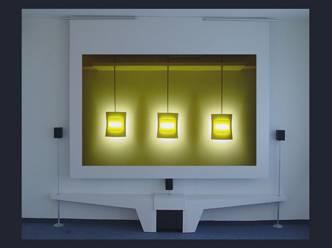 Für den Konferenzraum von eurosoft sind die Beamer- Projektionsfläche mit Audio-System sowie die Wand- leuchten entwickelt worden.