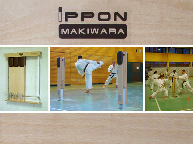 Makiwara sind Trainingsge- räte im Karate. Sie werden benötigt um Schlag- und Tritttechniken zu perfektio- nieren. Diese Neuentwicklung ist im Gegensatz zu den bisherigen Makiwara höhen- und härtenverstellbar und zeichnet sich durch ihre Platz sparende Doppelanordnung aus.